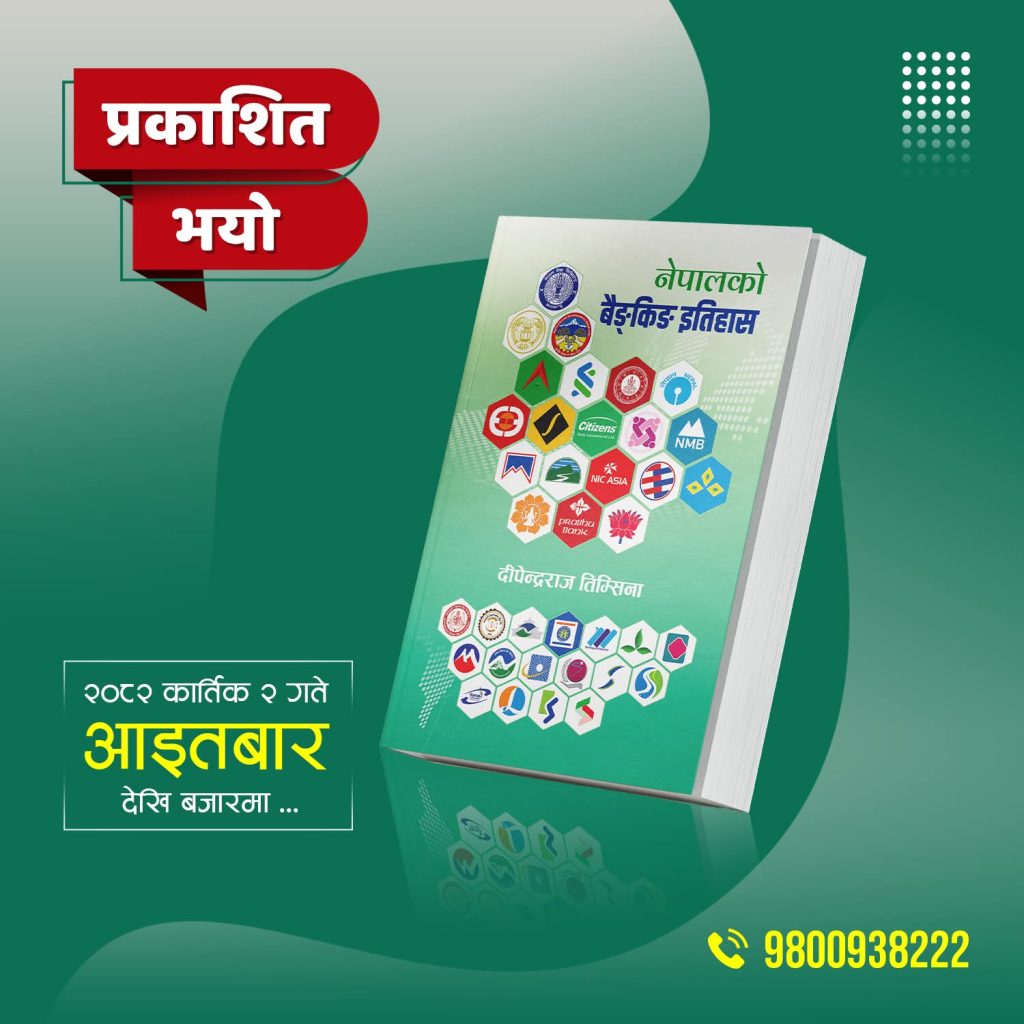 झापा दमककाे स्रष्टा छापाखानाले छापेको लिला निराैला प्रकाशक रहेको याे तिम्सिनाकाे १४ ओै पुस्तक हाे । लेखक तिम्सिना विगत एक दशकदेखि निरन्तर खाेजमुलक पुस्तक लेखन गर्दै आएका छन् । नेपाली बैङ्किङ इतिहास बुझ्न याे पुस्तक राम्रो सहयोगी बन्ने नेपाल बैङ्कर्स संघका अध्यक्ष दिनेश काेइरालाले समेत शुभकामना दिदै बताउनु भएको छ ।