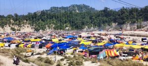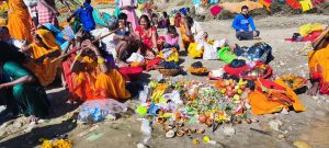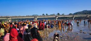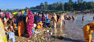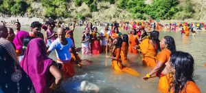 धामी–झाँक्री, भगता र भक्तजनहरू घरका कुलदेवता खेलाउँदै नदी किनारमा भेला भएका थिए। रातभर भूत–बैताल र देव–देवीको साधना सम्पन्न गरेपछि, बिहानै स्नान गरी दही–च्यूरासहित पूजा–अर्चना सम्पन्न गरी घर फर्किएका छन्।