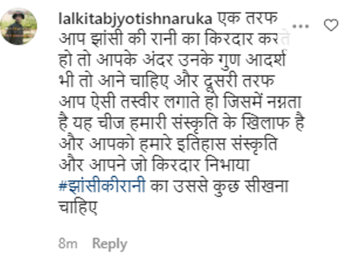 फोटो हेरेपछि सोसल मिडिया प्रयोगकर्ताले उनीमाथि रोष व्यक्त गरे त केही प्रयोगकर्ताले उनको समर्थन पनि गरे । उदाहरणका लागि एक प्रयोगकर्ताले उनलाई संस्कृतको पाठ पढाउँदै उनलाई झाँसीकी रानीको अभिनय गरेकोमा उनले उनीबाट केही कुरा सिक्नुपर्ने बताएका छन् ।