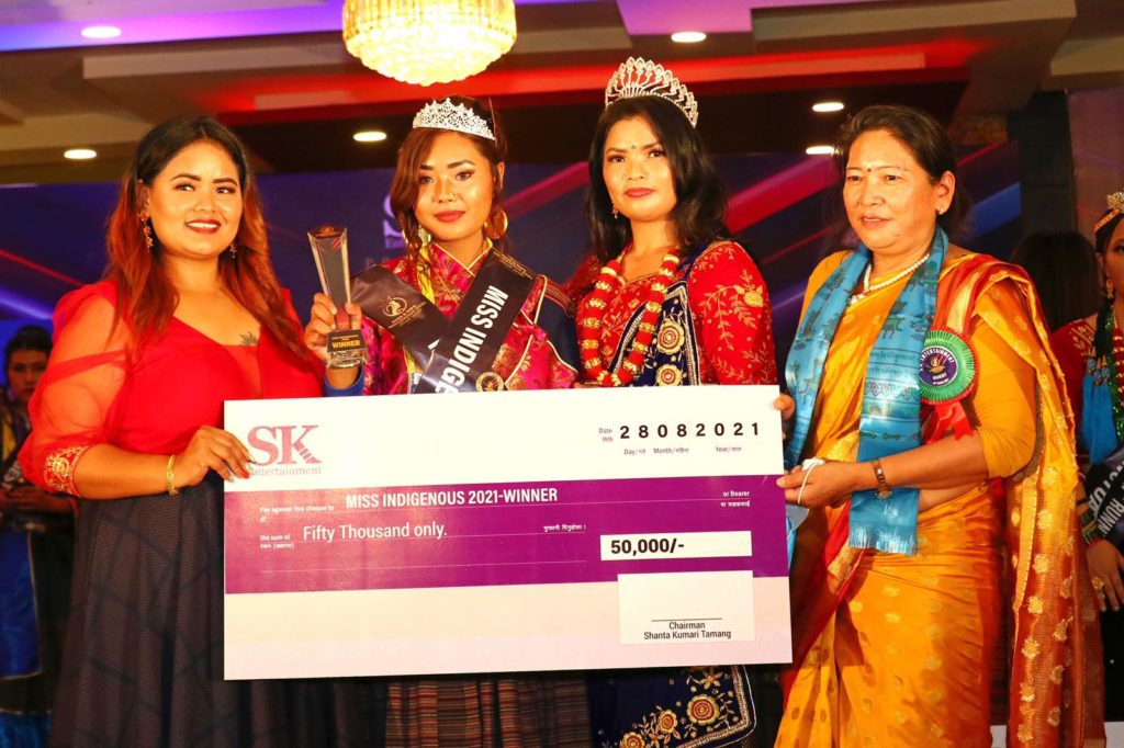 एसके ईन्टरटेनमेन्टको प्रस्तुतिमा आयोजना भएको मिस एण्ड मिसेस ईण्डिजिनियस -२०२१ सिजन-२ को उपाधि नम्रता तामाङ र आशा थापाले जित्न सफल भएका छन् । त्यसैगरी मिसेस ईण्डिजिनियस-२०२१ तर्फ फर्स्ट रनरअप, भिउर्स च्वाइस सिता तामाङ, सेकेन्ड रनरअप लक्ष्मी गुरुङ, थर्ड रनरअप निरु राइ, अर्गनाइजर च्वाईस क्रिष्टिना आले मगर, पब्लिक चवाइस शान्ता तामाङ, पपुलर रुपा थापा मगर, पर्सनालिटी सिता तामाङ, कन्फिडेण्ट सपना तामाङ लोप्चन, बेष्ट वाल्क शान्ता तामाङ, बेष्ट स्माईल रुपा थापा मगर, फोटोजेनिक र ट्यालेन्ट आशा थापा, डिसिप्लिन पायल गहतराज, पंचुअल र फ्रेण्ड्लि लक्ष्मी गुरुङ, बेस्ट सकिन निरु राइ, बेष्ट हेयर रेखा गुरुङ र इनोसेन्ट सुशिता तामाङले जित्न सफल भएका छन् भने मिस ईण्डिजिनियस-२०२१ तर्फ फर्स्ट रनरअप, पंचुअल, भिउवर्स चवाइस र पब्लिक च्वाईस बिमिशा गुरुङ, सेकेन्ड रनरअप मुना बुढामगर, थर्ड रनरअप सबिना गुरुङ, अर्गनाईजर च्वाईस गीता मगर, पपुलर मुना बुढामगर बेष्ट वाल्क सबिना गुरुङ, बेष्ट स्माइल रशिला तामाङ, फोटोजेनिक सबिना गुरुङ, ट्यालेन्ट शान्ति गुरुङ, डिसिप्लिन प्रिया खनाल, स्कीन रेनुका तामाङ, बेष्ट हेयर लक्ष्मी चौधरी,फ्रेन्डली मिना राइ र इनोसेन्ट गीता मगरले सब टाइटल जित्न सफल भएका छन् । बिजेताहरुले नगद पुरस्कार सहित ट्रफी, क्राउन लगायत अन्य गिफ्टहरु समेत पाउन सफल भएका थिए ।