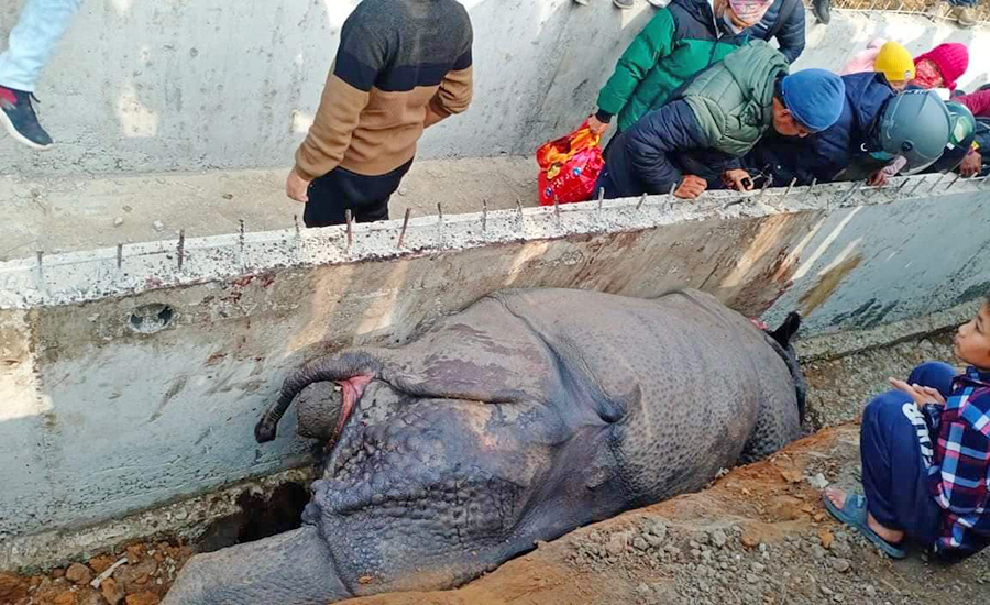 चितवनको नारायणगढ पुल्चोक-गोन्द्राङ सडकखण्ड विस्तारका क्रममा बनाइएको नालीमा परेर एक गैंडाको मृत्यु भएको छ । चितवन भरतपुरको टिकौली जंगल छेउको प्रहरी बिट अगाडि सडक विस्तारका लागि बनाइएको नालीमा गएराति रडमा उनिएर नालीमा खसेर गैंडाको मृत्यु भएको हो ।