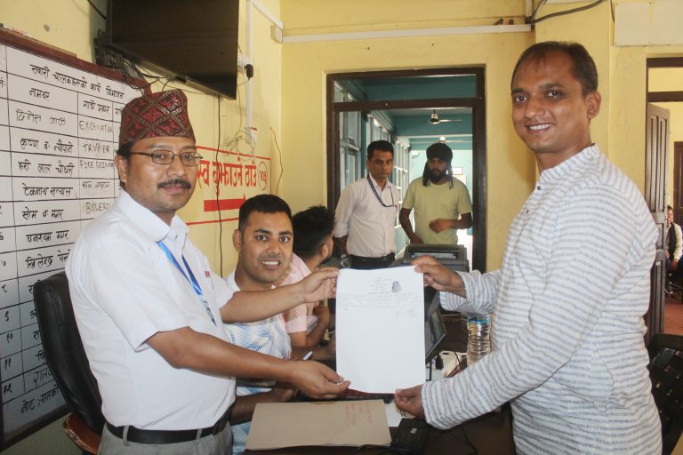 २ साता अघि नै आफ्नो उम्मेद्वारी घोषणा गरेर आफ्ना प्रतिबद्धतासहित चुनावी अभियानमा होमिएका उनले आज बिहान ११ बजेर ५० मिनेटमा मनोनयन दर्ता गराएका हुन् । मनोनयन दर्ताका लागि साढे १० बजे नै निर्वाचन अधिकृतको कार्यालय सुन्दरहरैंचामा आएका उनले कार्यालयको प्राविधिक समस्याले केही समय कुरेर मनोनयन दर्ता गरेका थिए ।