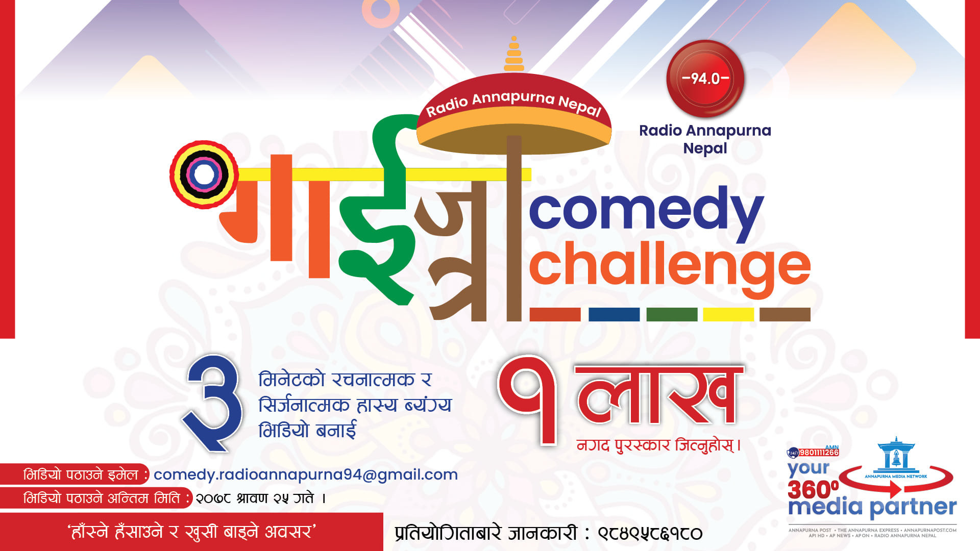 अन्नपूर्ण नेपाल ९४ मेगहर्जले ल्यायो रु १ लाख नगद पुरस्कार राशिको गाईजात्रा कमेडी च्यालेन्ज प्रतियोगीता