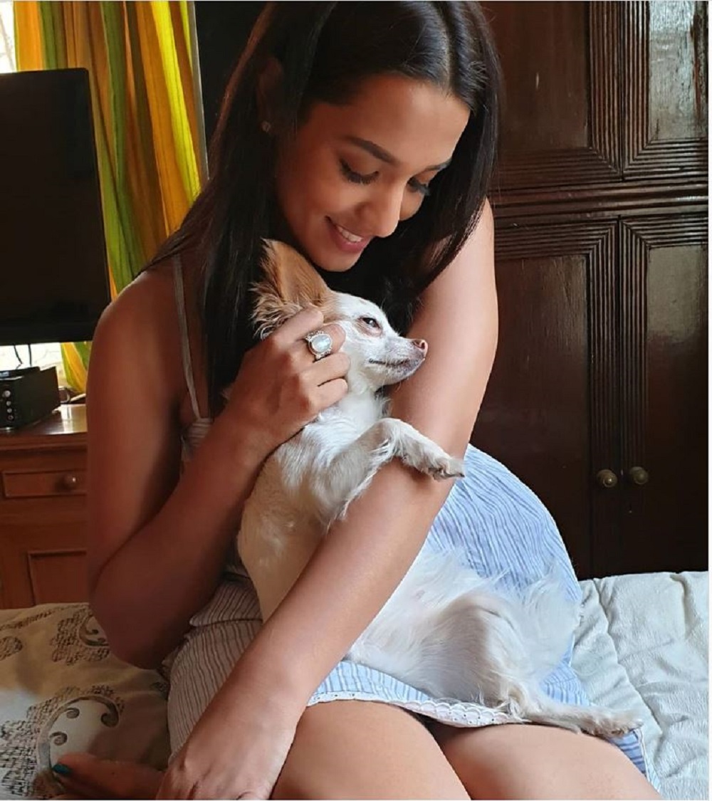 प्रिंयका कार्कीको काँखमा कुकुर