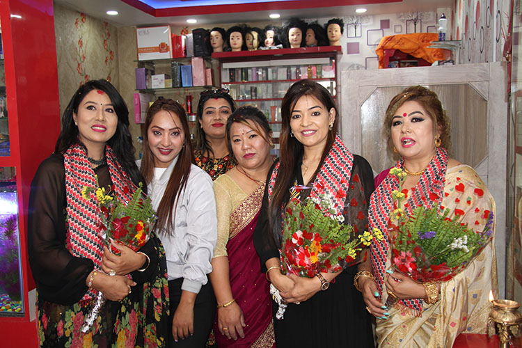 बरिष्ट ब्युटिसियन सोनी र रुस्काद्धारा राधिकाको एस आर ब्युटिपार्लर उद्घाटन