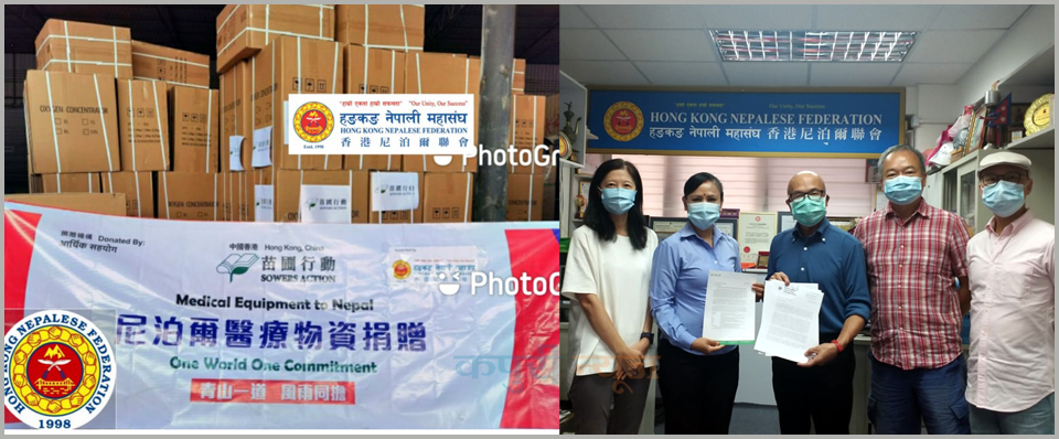 हङकङ नेपाली महासङ्घले नेपालमा सय थान अक्सिजन कन्सन्ट्रेटर पठायो