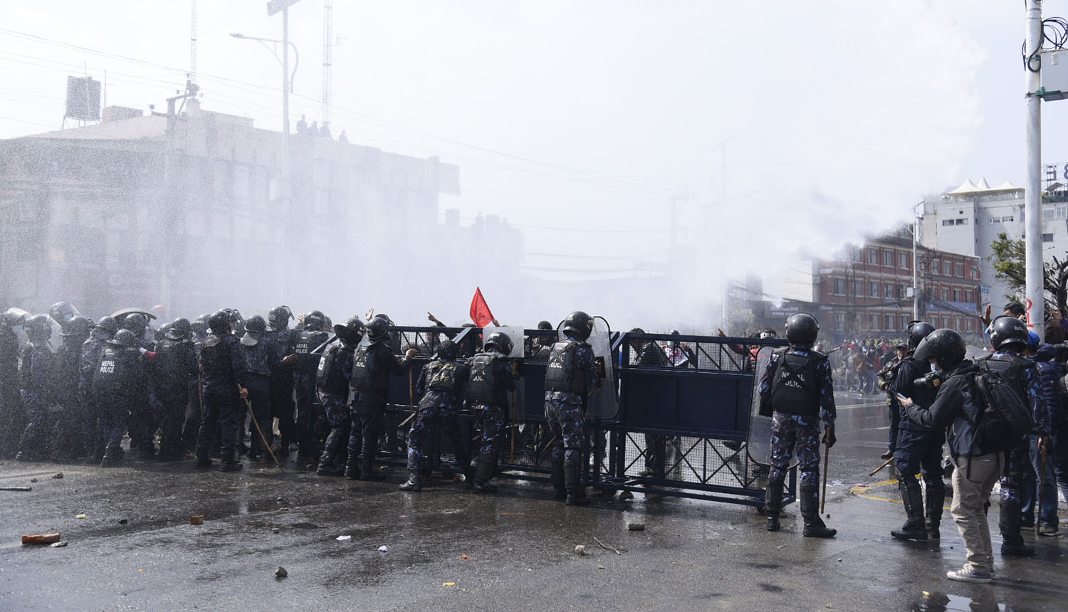 बानेश्वरमा आन्दोलनकारी माथि पानीको फोहोरा प्रयोग