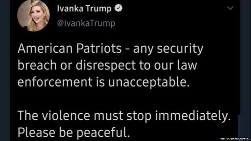 इभांका ट्रम्पले हिंस्रक समर्थकलाई देशभक्त भनेर डिलिट गरिन् ट्वीट
