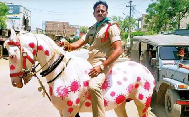 भाइरल बन्यो पुलिसको ‘कोरोना घोडा’