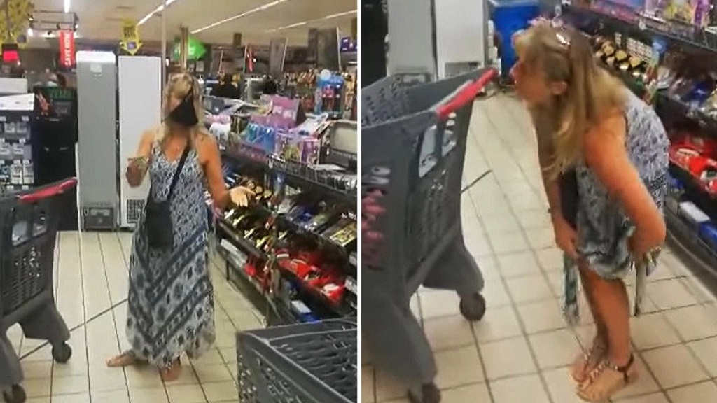 सुपरमार्केट प्रवेश गर्न नपाएपछि महिलाले भित्री वस्त्र फुकालेर मास्क बनाइन्, भिडियो भयो भाइरल